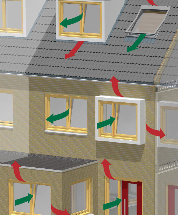 Doordat er geen luchtlekken meer aanwezig zijn in de gebouwschil worden ongewenste luchtstromen voorkomen. De lucht die binnenkomt hoeft dus niet steeds opnieuw opgewarmd (winter) en afgekoeld (zomer) te worden, iets wat veel energie kost. - Comfort